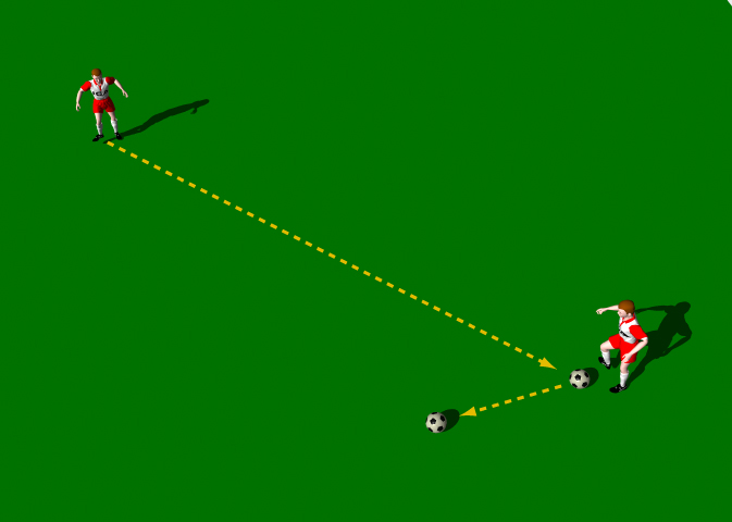 Two players are positioned in a grid 20 yards x 20 yards. One player starts the practice with two balls. The player passes the first ball to their partner to control and redirect approximately 2 to 5 yards in front of them.