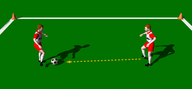 Two players are positioned in a grid 10 yards x 10 yards. The practice starts when one player passes the ball to