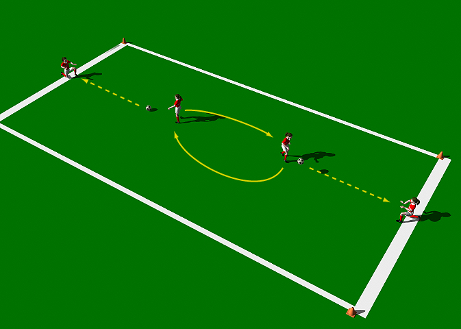 If the player has to take a touch before passing, ensure that the first touch is played in front of the player and