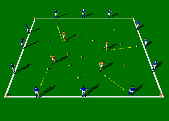 Area 20 x 20 yards. Entire Group of players. Large supply of balls. Cones.