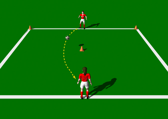 Area 10 x 30 yards. 2 players. 1 ball. Cones.