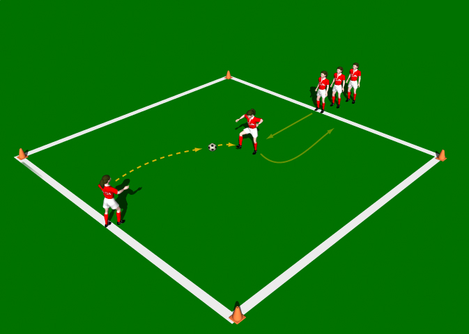 This practice is designed to improve each player’s ability in ball control. The emphasis is placed on “Cushion