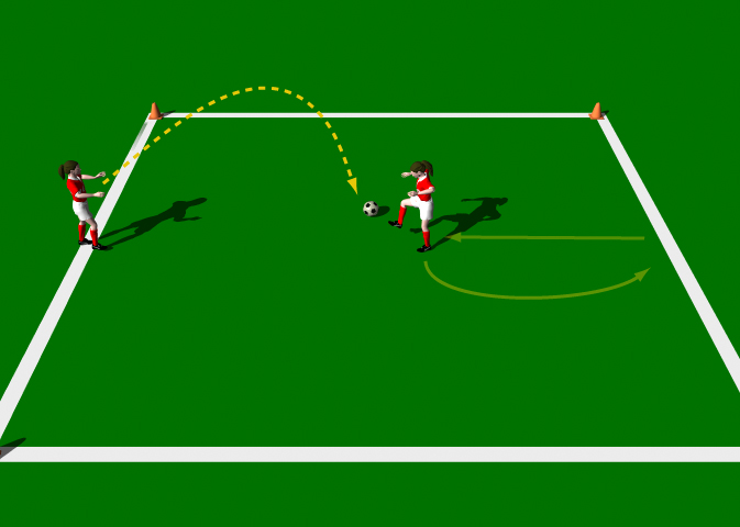 Grid 10 x 20 yards. Small group of players. Cones. 2 Balls.