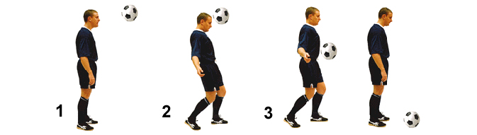 head steady and eyes fixed firmly on the ball. Slightly lift up the chin and tilt back the surface of the forehead.