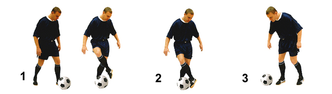 Chop down on the outside of the ball, using the laces only. Only slight contact is made with the outside of the ball.