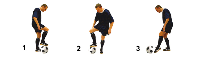 Step One: Place the sole of the foot on the ball. Drag the ball back behind you using the sole of the foot.