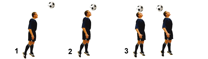 Step Two: Contact is made with the top part of the forehead and below the horizontal mid-line of the ball. The ball should be redirected with just a small part of the ball glancing off the forehead.