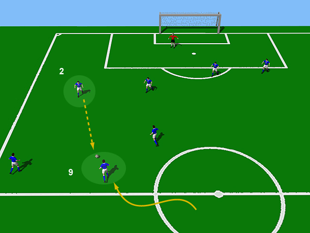 If the near-sided forward (# 9) is marked the forward can still make the same run across the field and
