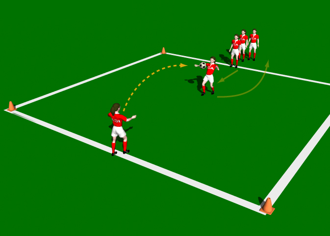 The player receives a point for each successful control and pass back to the server. After each pass the receiver must turn and join the end of the group.