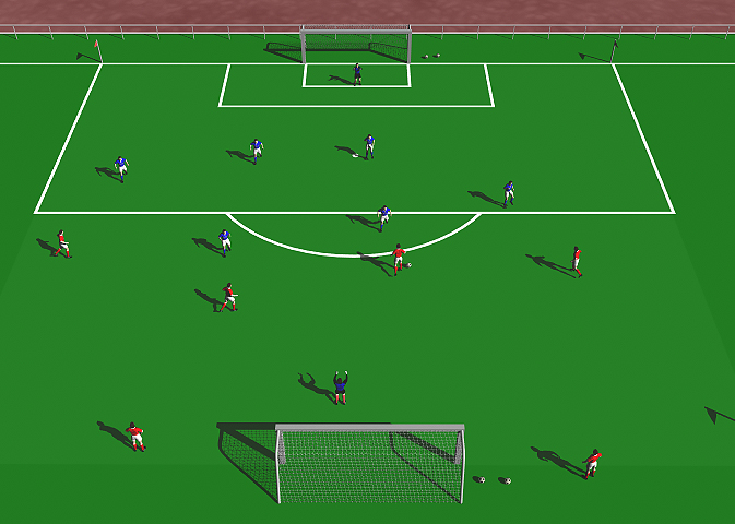 front of the four defenders. The condition also puts an emphasis on quick direct attacking to get a strike on goal using six passes or less.