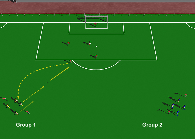 to the opposite goal and score past a defender from (group 2).