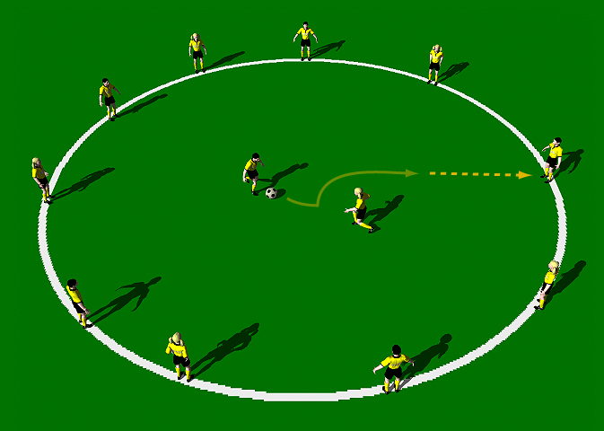 After all the kids have had a chance, play keep away from one or two players in the middle. One touch, two touch