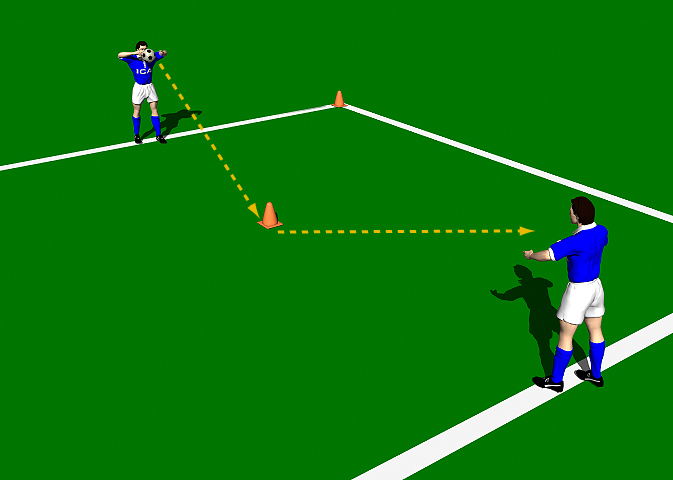 The players alternate heading the ball from their hands, while attempting to hit the cone. A goal is awarded