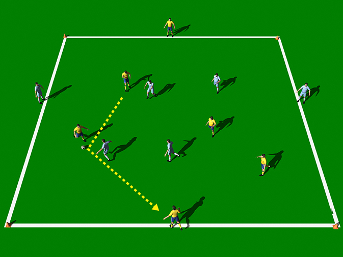 This is a great drill to emphasize quick movement off the ball and dynamic "one and two touch" passing.