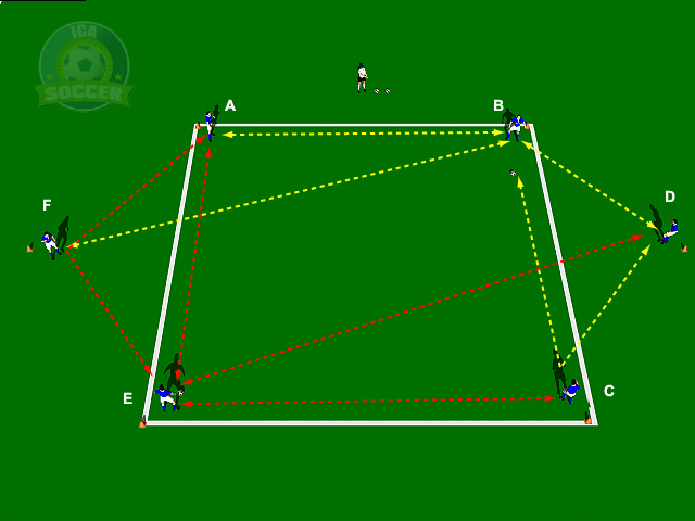 Emphasize fast paced passes, limit to "2 touch", "side on" body position to receive the ball.