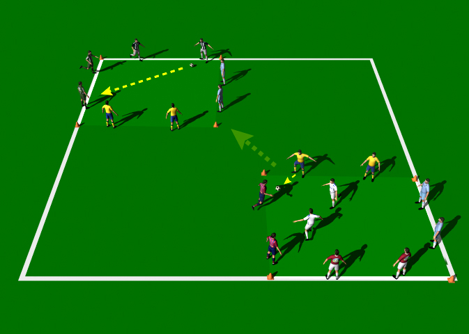 Players must be scanning and always looking around to see where the pressure may be coming from.  The energy and intensity levels in this version are always very good.  Players do not want to let their partners down or stay in the middle pressuring the ball that long.