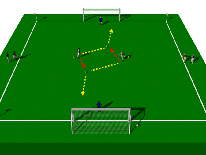 This is a fun shooting exercise designed to develop “quick reactions” when going to goal. Players love this drill.