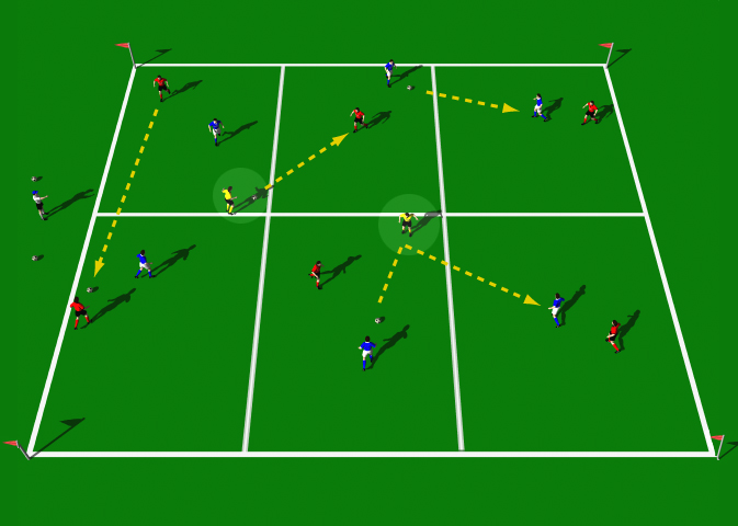 The object of this exercise is to develop each players game vision and quick decision making. |